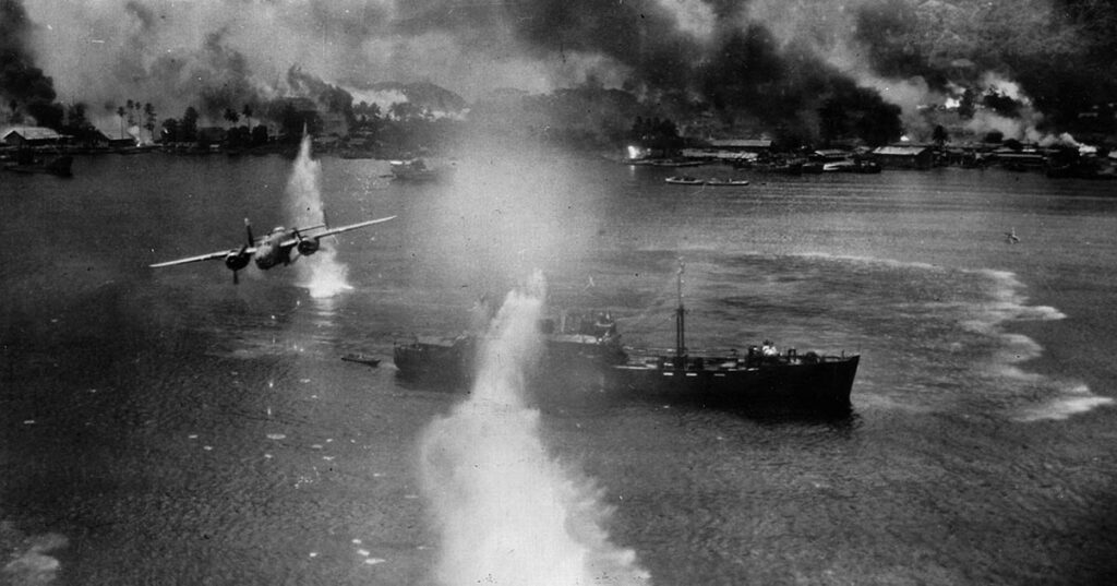 Allied aircraft attacked Japanese ships, airfields, and port facilities in Rabaul to prevent Japanese forces from attacking the Allied invasion force of Bougainville.